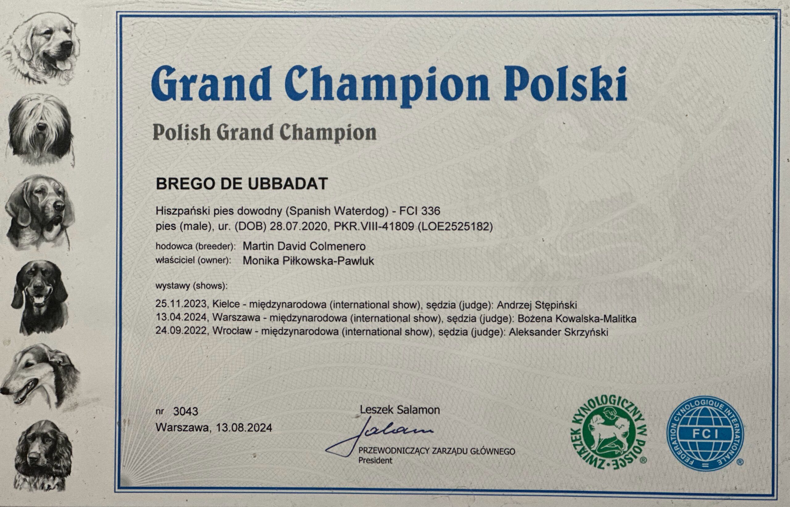 ChPl BREGO de Ubbadat – champion class – BEST OF BREED has also finished GRAND CHAMPION OF POLAND
